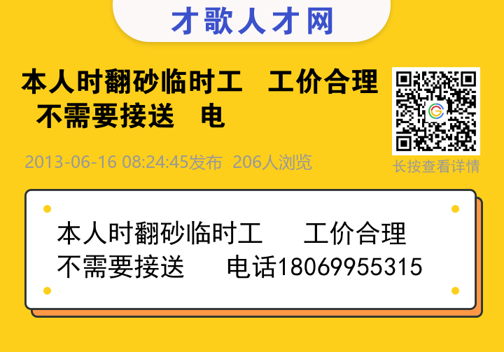 本人时翻砂临时工 工价合理 不需要接送 电话18