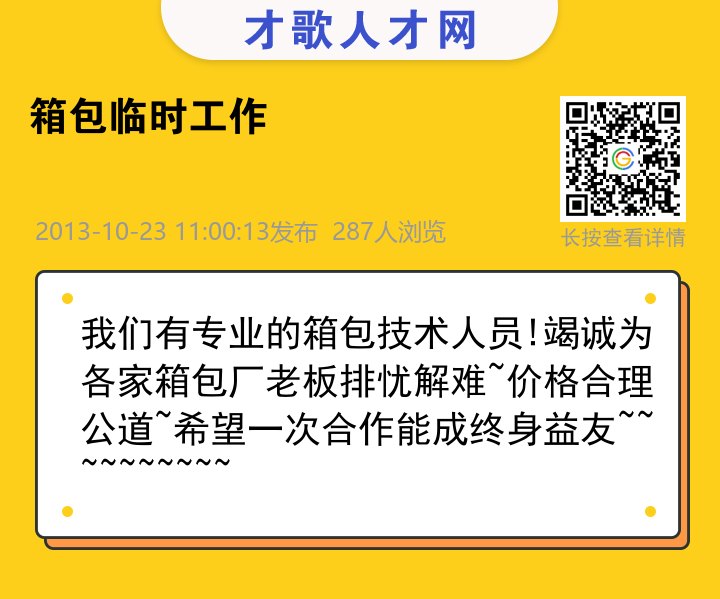 我们有专业的箱包技术人员!竭诚为各家箱包厂老板排忧解难~价格合理公道~希望一次合作能成终身益友~~~~~~~~~~