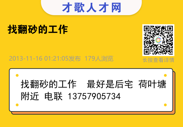 找翻砂的工作 最好是后宅 荷叶塘附近 电联 13757905734