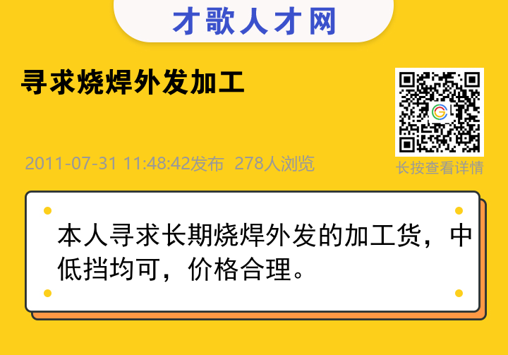 本人寻求长期烧焊外发的加工货,中低挡均可,价格合理。