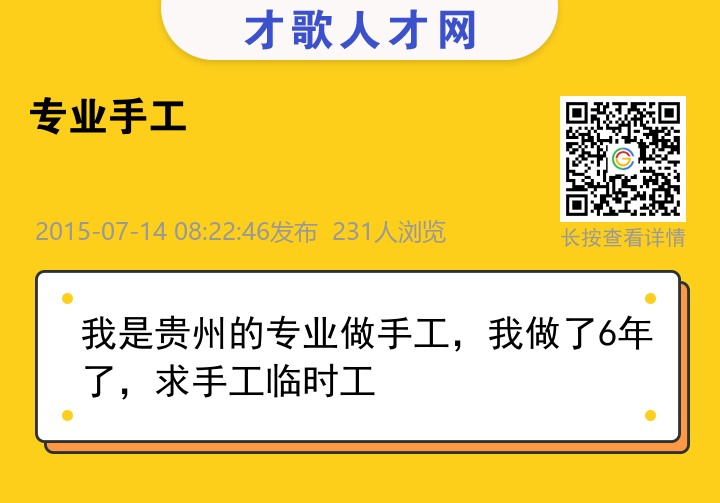 我是贵州的专业做手工,我做了6年了,求手工临时工